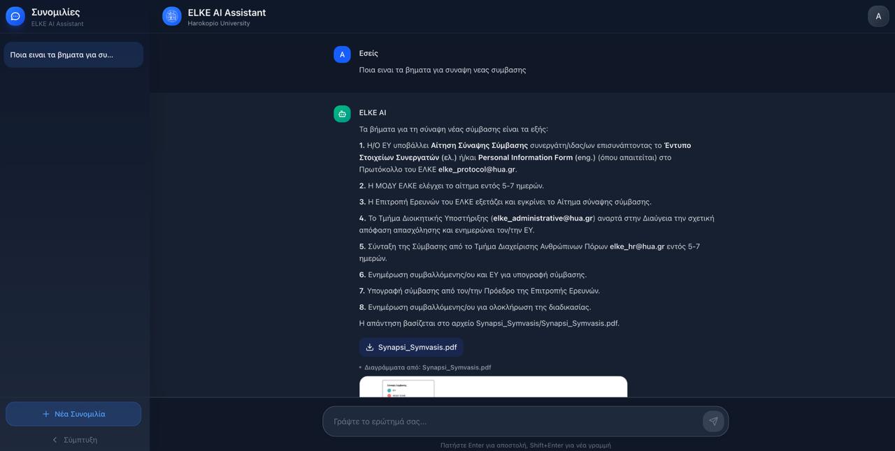 Employees can ask questions in plain language (Greek or English) and receive accurate, up-to-date answers from internal policies, knowledge bases, or operational data.